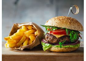 Steak haché de bœuf (180gr), Chorizo, Cheddar, Confits d'oignons, Tomate, Salade, Sauce maison, Frites