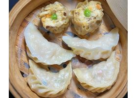 6 pièces, raviolis aux crevettes, shu-mai, raviolis porc et légumes