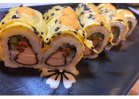8 pièces, thon pané, concombre, omelette, sésame, mayonnaise piquante