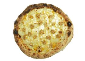Mozzarella, Gorgonzola et après cuisson "miel, noix et poires".