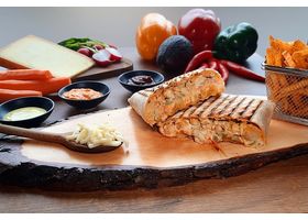 Raclette, 1 viande au choix, sauce, crudités, frites, sauce fromagère