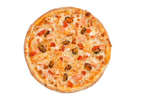 Tomates, mozzarella, vongole, crevettes, poulpe, calamar, origan