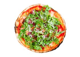 Tomate, mozzarella, mascarpone, tipo parma, ruccola